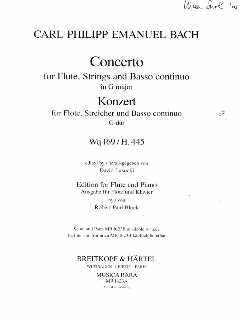 (wotquenne) numbers are also shown. Carl philipp emanuel bach слушать онлайн. C p e bach concerto for flute in g dur joidy blanco flute. Flute concertos wq 169, 166. Concerto for flute, string orchestra and continuo in c major: