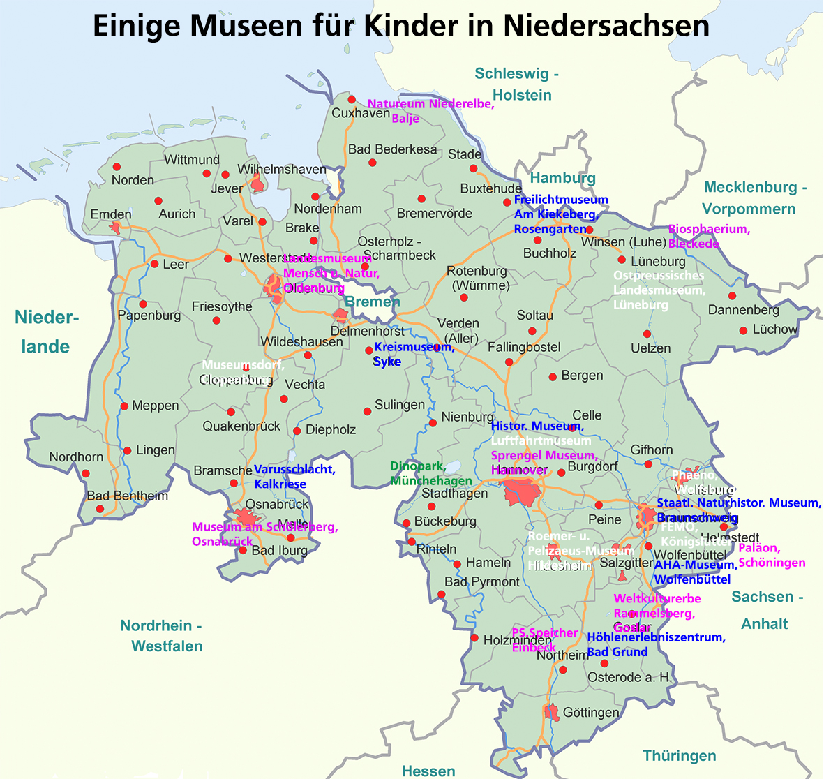 Landkarte deutschland für kleinere kinder niedersachsen. In niedersachsen gibt es viele hundert museen.